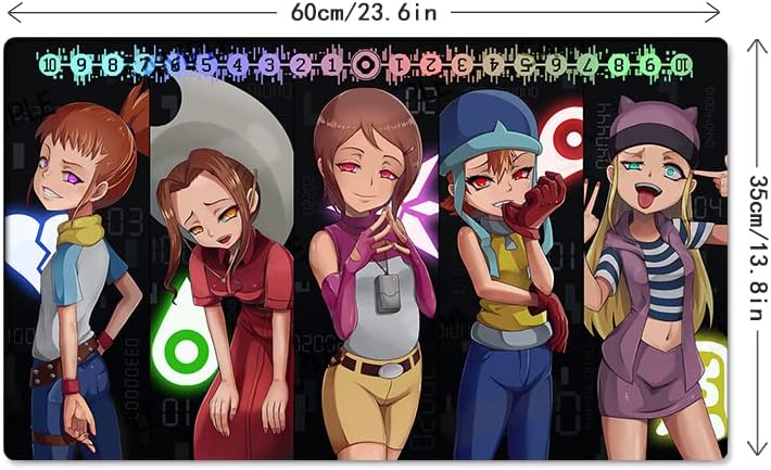 Product Description Size: about 600*350(23.62x13.78 inches)Thickness: about 1.5-2mm. Due to different production batches, the thickness will vary slightly. But the printing quality is very good. Material: High quality natural rubber+ fabric Package include: 1x mat +1x free bag Features: 1. It can be used as a playmat mouse pad, keyboard pad, card mat, and work mat. 2. It can be rolled or folded to fit in backpacks or just simply hand-carried. 3. It can be washed. But please do not use the machine to wash it.