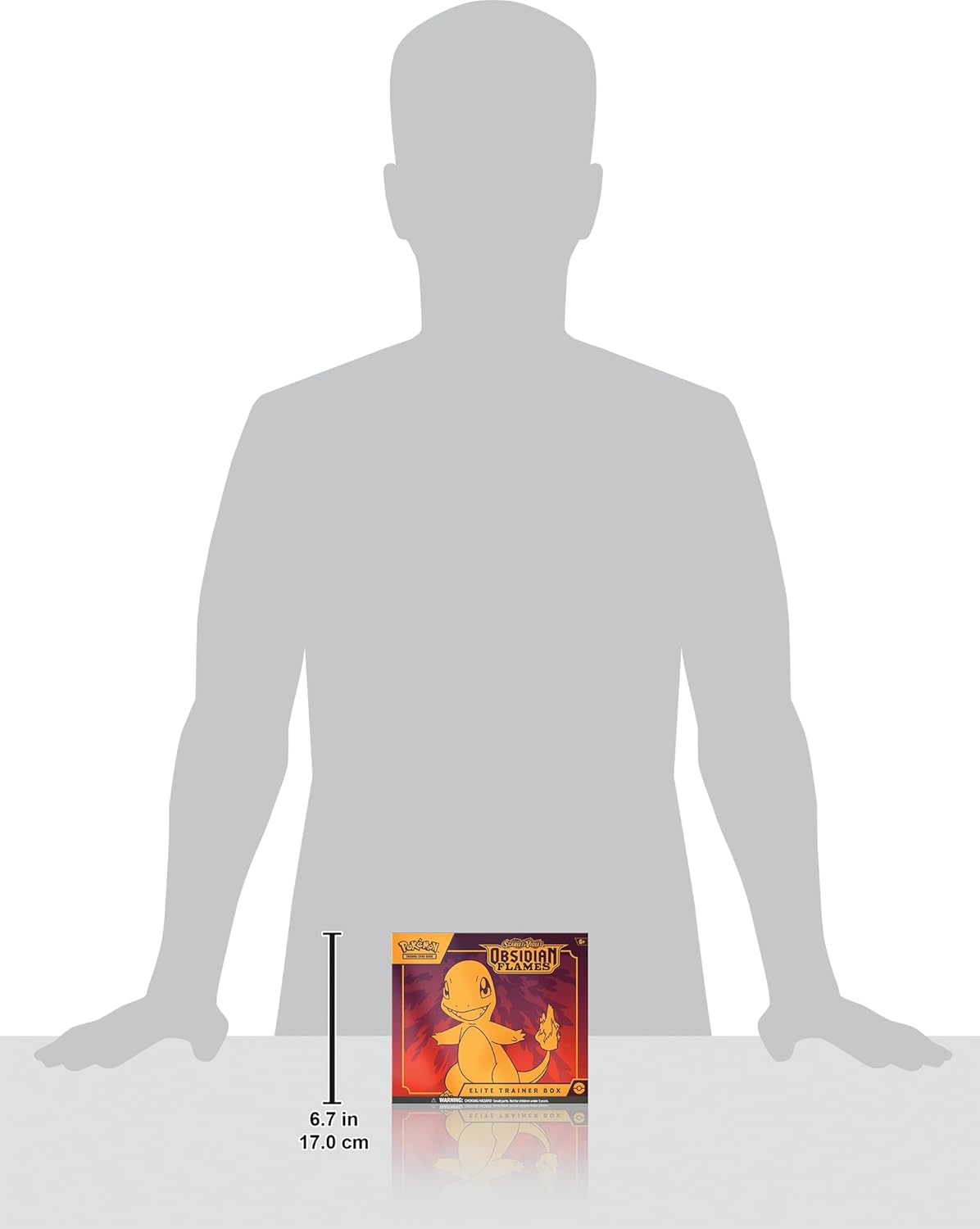 - The Pokémon TCG: Scarlet & Violet—Obsidian Flames Elite Trainer Box includes 9 Pokémon TCG: Scarlet & Violet—Obsidian Flames booster packs and 1 full-art foil promo card featuring Charmander.